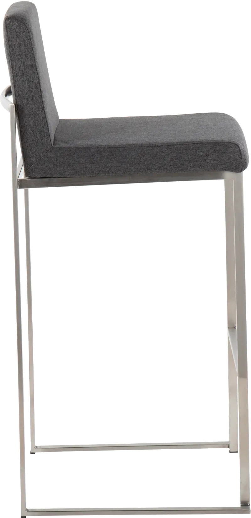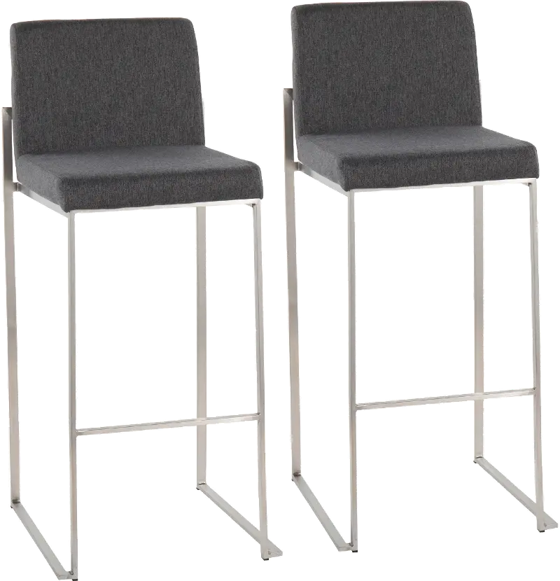 Fuji High Back Stainless & Charcoal Barstools, Set of 2