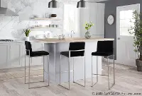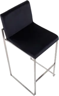 Fuji High Back Stainless & Black Velvet Barstools, Set of 2