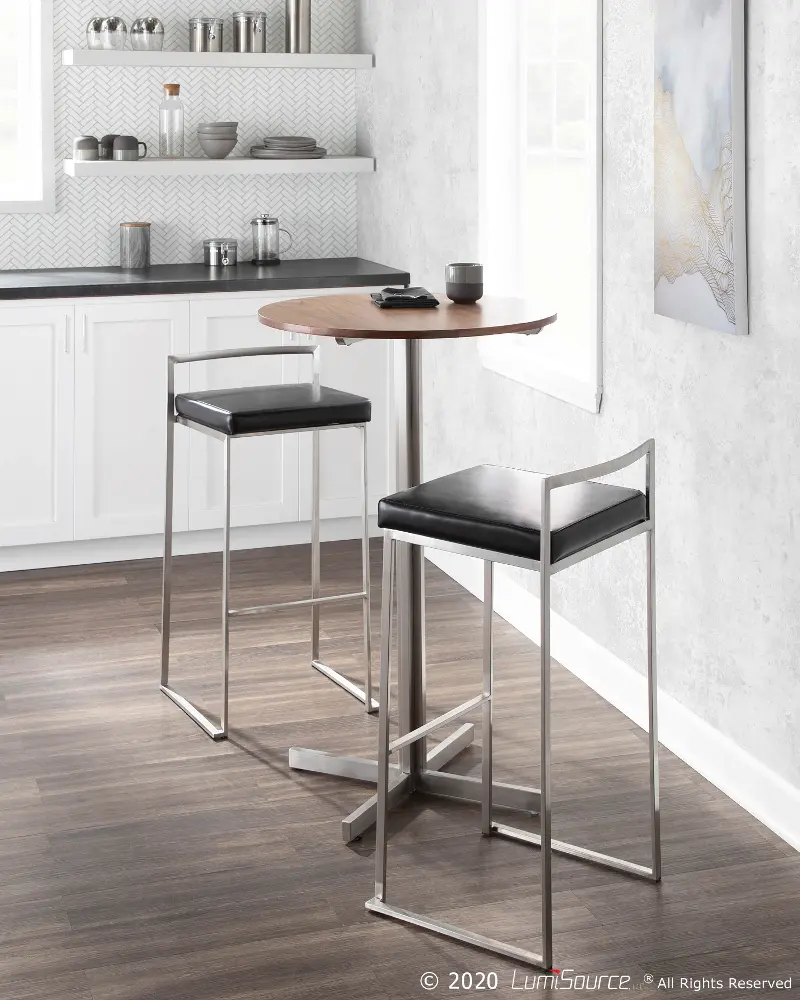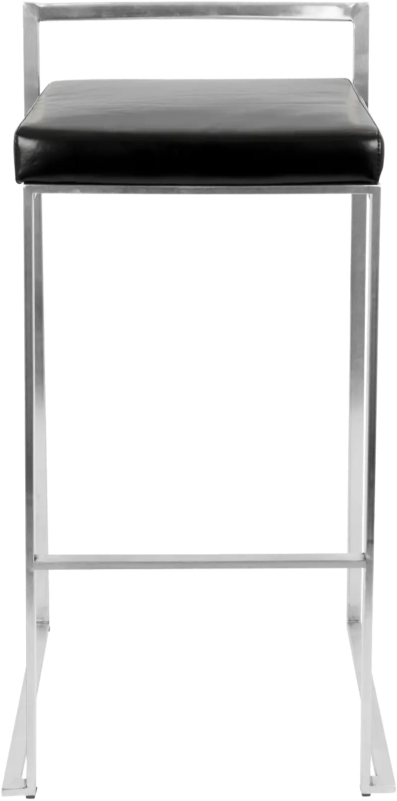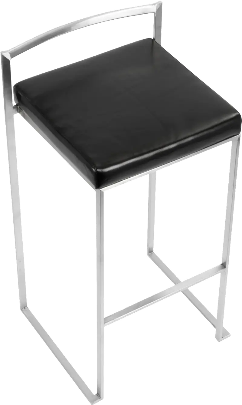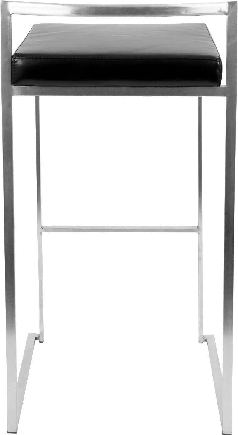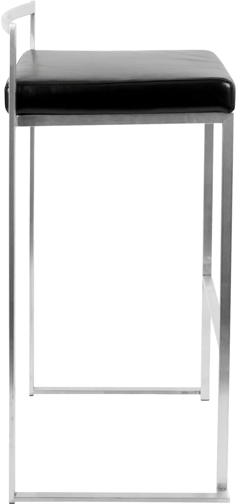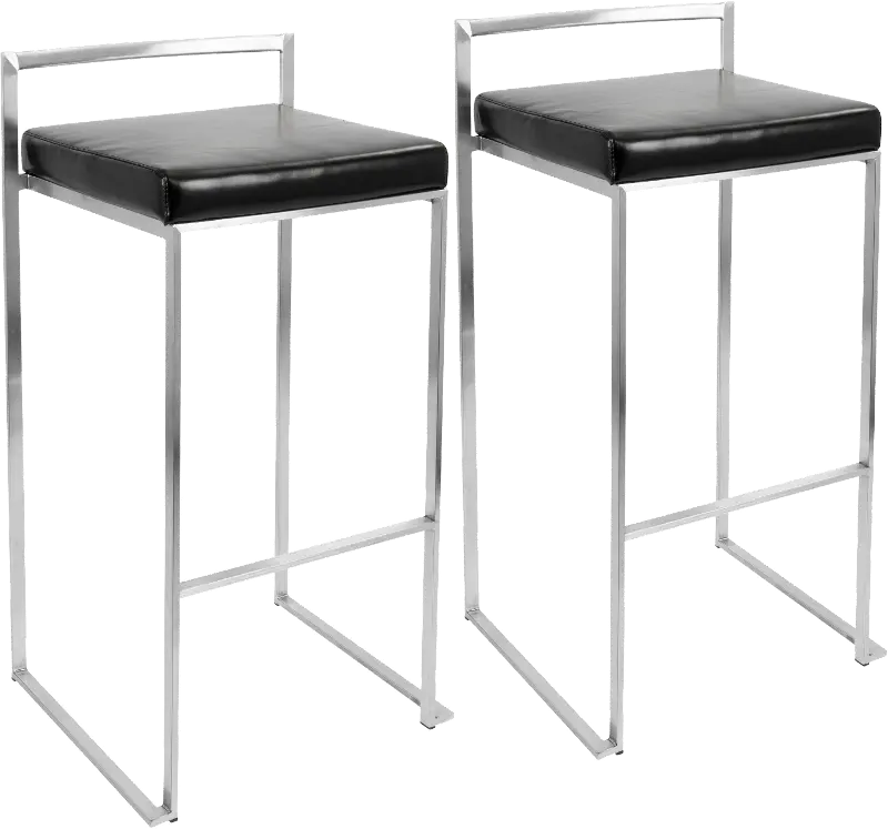 Fuji Low Back Stainless & Black Faux Leather Barstools, Set of 2