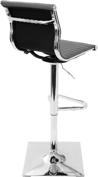 With its slightly angled faux leather seat and chrome base, this bar stool is appealing to the eye and comfortable to sit in.