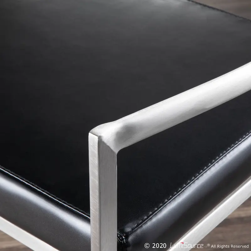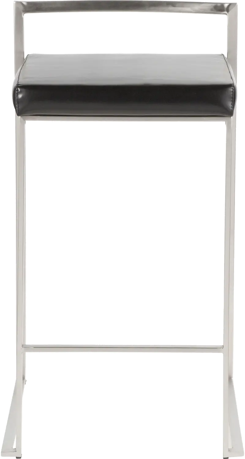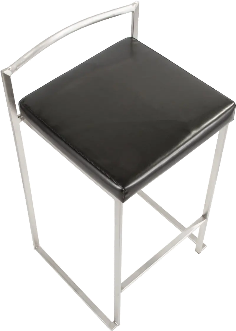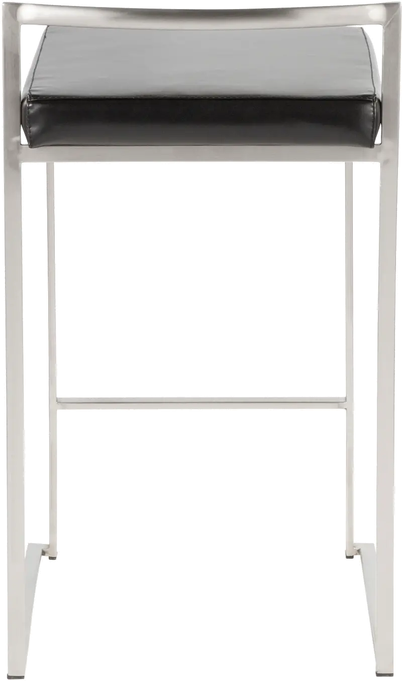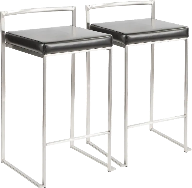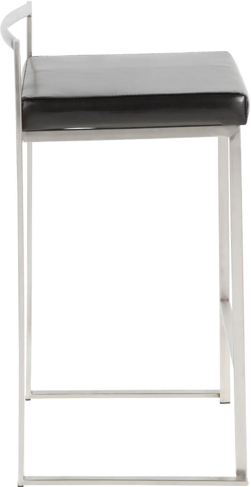 Fuji Low Back Stainless & Black Faux Leather Counter Stools, Set of 2