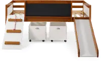 Its sturdy construction and fun features like rope ladder and slide mean hours of fun. Its low loft design leaves room below the bed for storage or play. The 2 included toy boxes make for easy tidying up.
