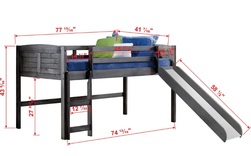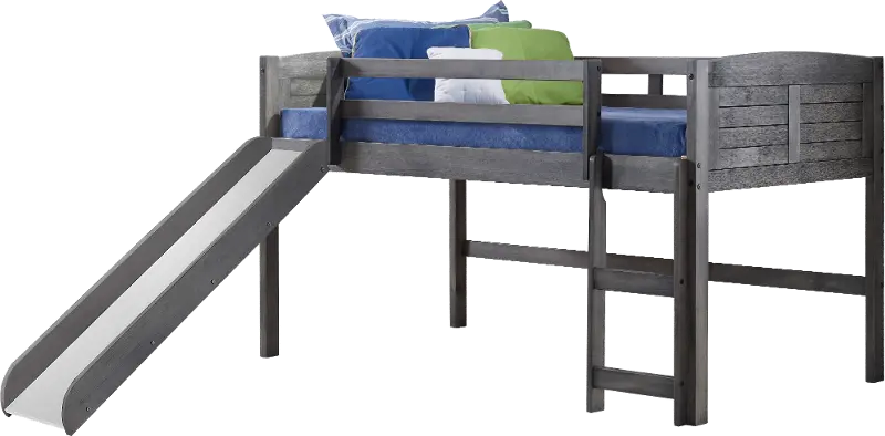Louver Antique Gray Twin Loft Bed with Slide