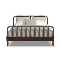 Carefully crafted from solid mahogany wood and veneers, this bed features a rich, antiqued coffee brown stain that adds sophisticated warmth to more traditional bedrooms. Its slatted headboard and footboard showcase an arched silhouette with elaborately turned accents, making it a statement in the room.