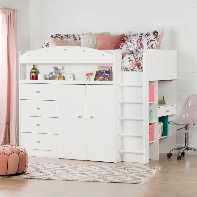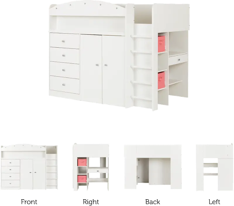 Tiara White Twin Loft Bed - South Shore