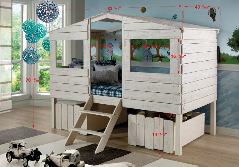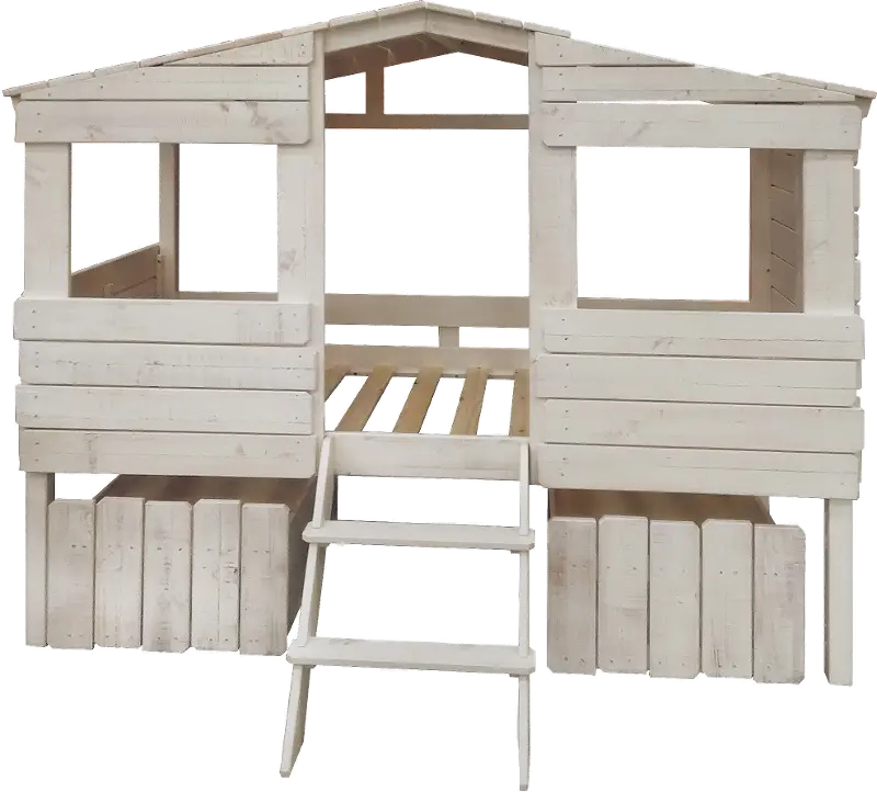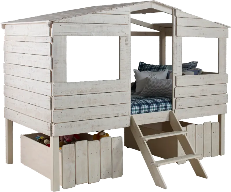 Add a whimsical design and convenient storage to your child's bedroom with the Treehouse rustic sand twin loft bed with storage drawers at RC Willey!