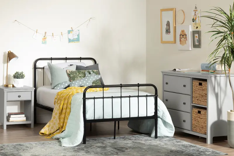 Add timeless, enduring design to any bedroom space with the Cotton Candy black twin metal bed at RC Willey!