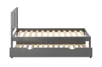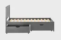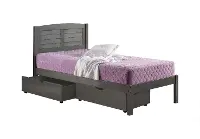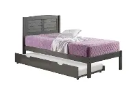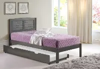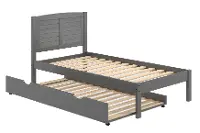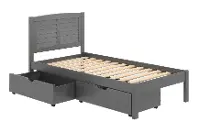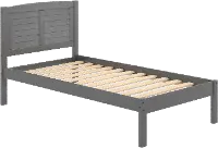 The classic, alluring style of this twin platform bed are on full display with its rustic gray finish, louver detailing, and versatile appeal.
