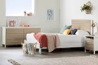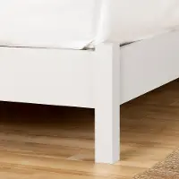 You’ve found it! This contemporary Scandinavian style bed will bring you the peace and lightweight feel you need for a good night’s sleep. The pure white finish complements the simplicity of the square post legs while also brightening your bedroom space. For a more complete look, pair it with a South Shore headboard!