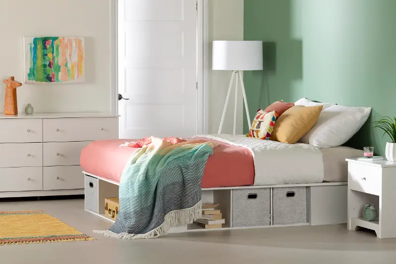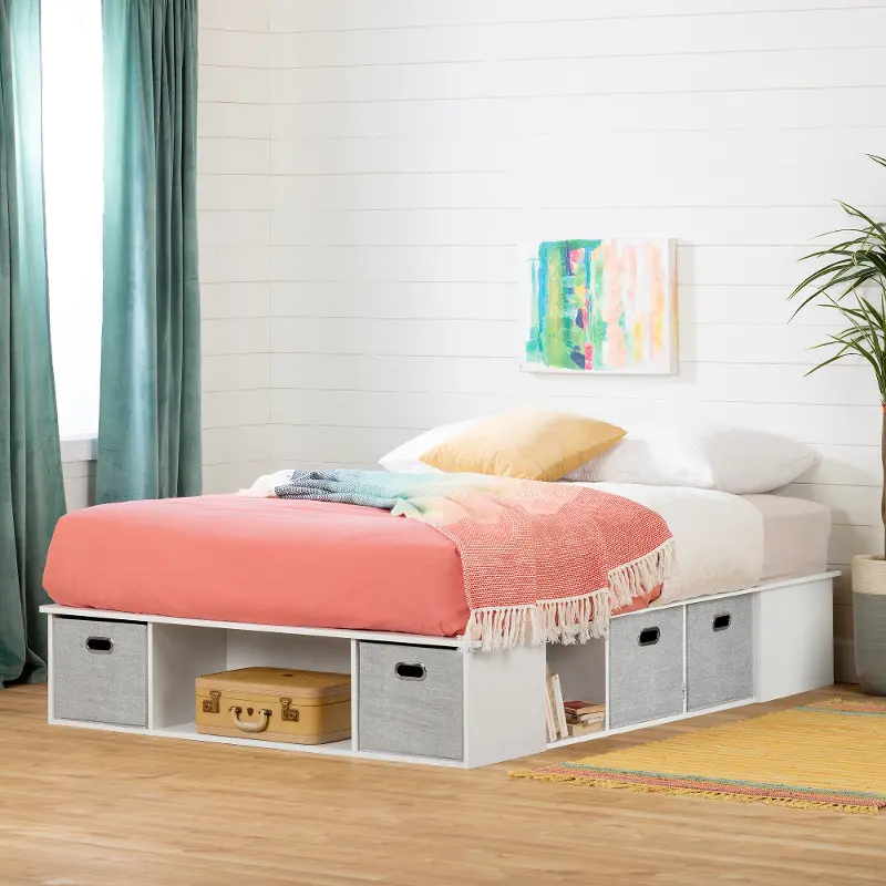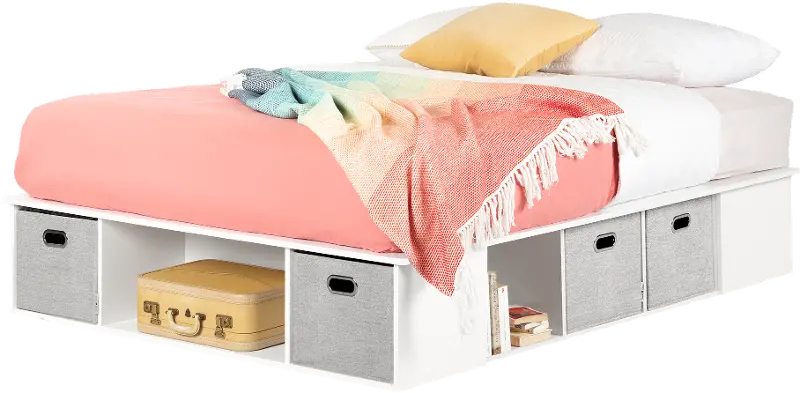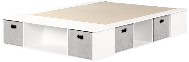 White Queen Platform Bed with Storage and Baskets - South Shore