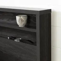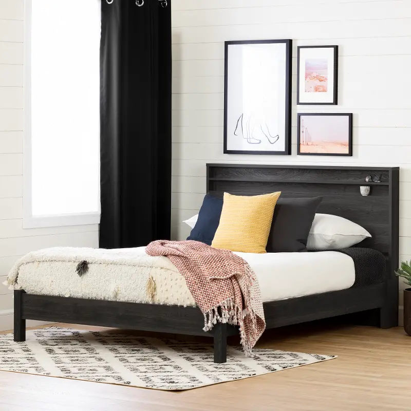 - The headboard of this set has a narrow shelf perfect for a picture frame, cell phone or clock.