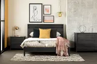 Make your bedroom a relaxing and peaceful place with this contemporary platform bed and headboard set.