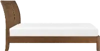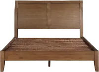 Solidly crafted, the king-size platform bed's sleigh-inspired headboard, clean lines, and wire-brushed light brown finish will set an inviting backdrop in your bedroom space.
