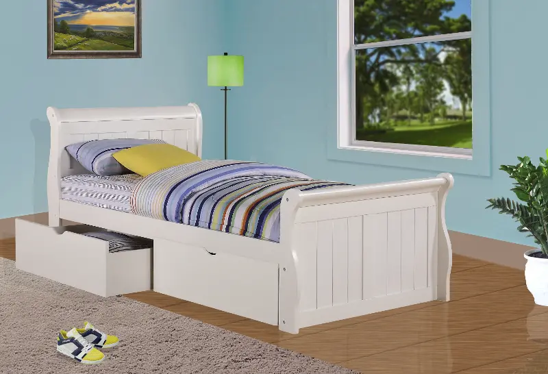 Mission White Twin Sleigh Bed with Drawers