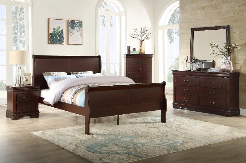 Louis Cherry Queen Sleigh Bed