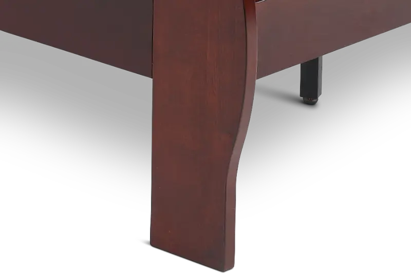Sturdily crafted, this queen size bed features a rich and versatile cherry finish. The sleigh-inspired headboard and footboard offer timeless appeal with a touch of traditional charm that is sure to enhance any bedroom space.