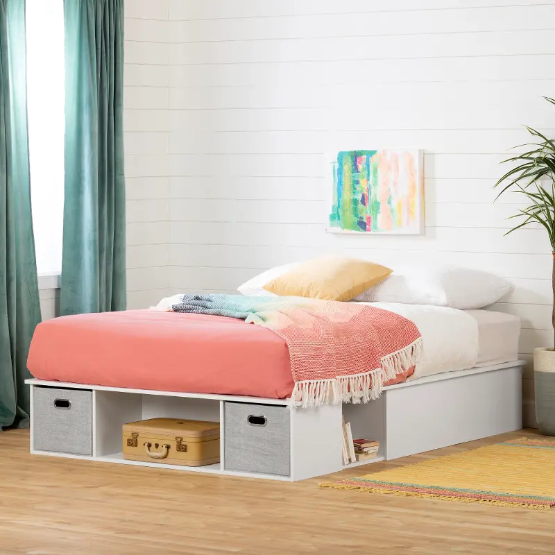 Vito Pure White Storage Bed - South Shore