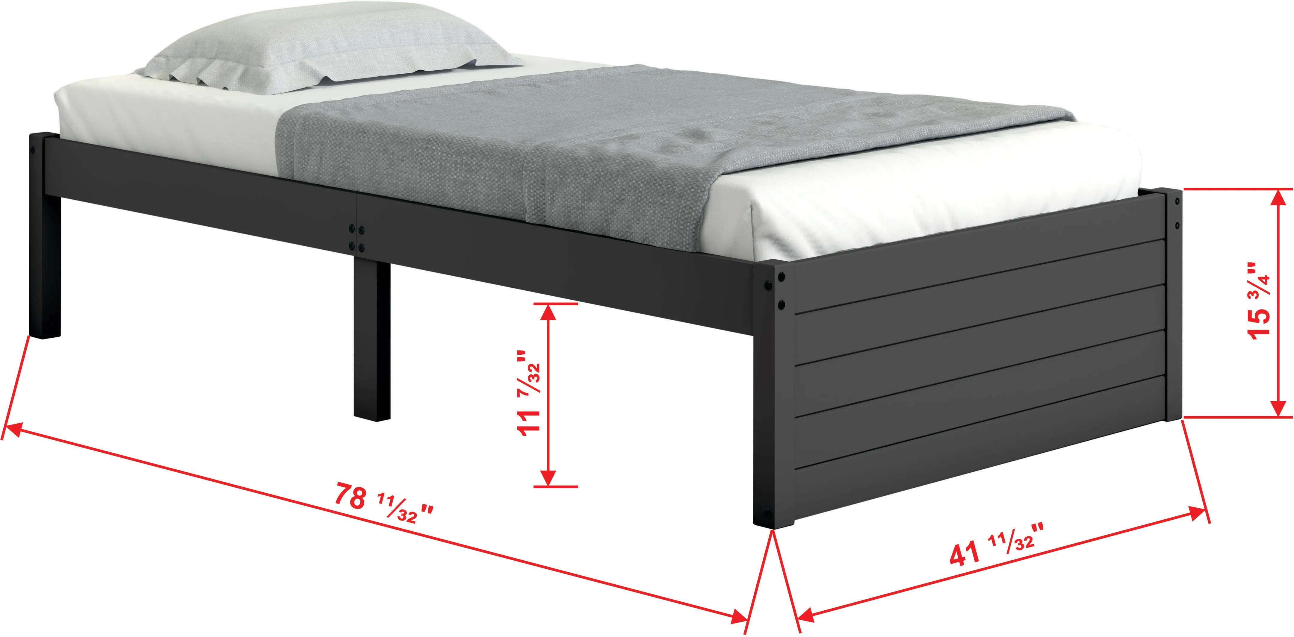 Our twin platform bed in a dark gray finish is the perfect transition bed.