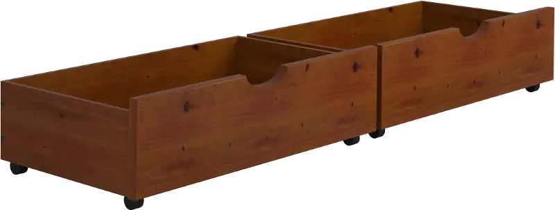 These dual underbed drawers in a warm espresso finish will add additional storage space to your bedroom!