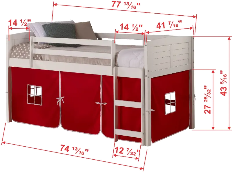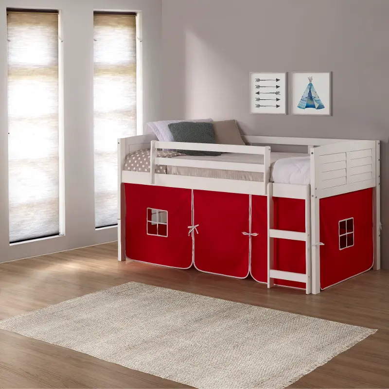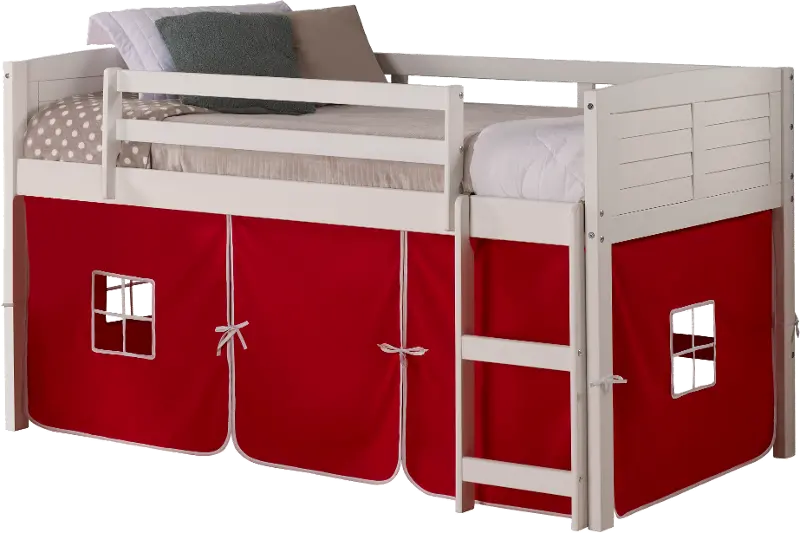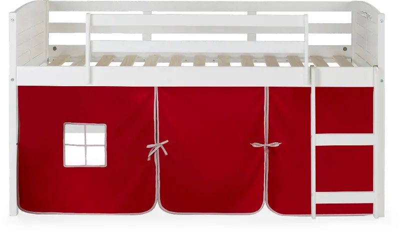 Louver White Twin Loft Bed with Red Tent
