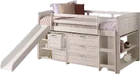 The contemporary farmhouse design is timeless and can make a room easy to decorate, giving it a fresh inviting look. The 3-drawer and 2 drawer chests add plenty of storage options, including three small shelves and a bookcase. The slide provides a fun playful way to get out of bed in the morning! Keep your child's treasures close and their room tidy and stylish with this all-in-one bedroom kit!