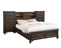 - Includes bookcase headboard, storage footboard, left pier, right pier, and rails