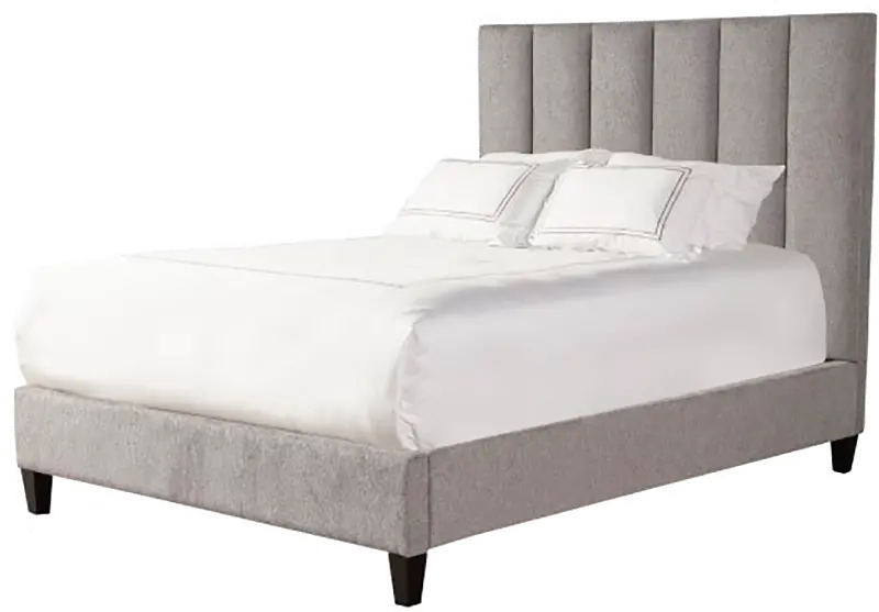 Upholstered in a chenille fabric, this king size bed's vertical channel quilting lends a touch of modern distinction and creates a pillowy soft headboard. The upholstered footboard and side rails are enhanced with tapered wood feet that lend to its contemporary and versatile vibe.