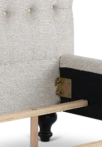 - Fully upholstered bed rails are bolted on (versus hooked on) for extra stability