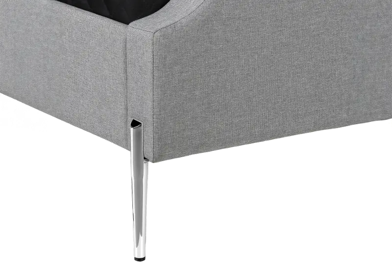 - Support legs covered in the same linen look fabric to effortless blend with the engineered wood frame, and chrome metal legs attached to the footboard for a sleek look in a bedroom