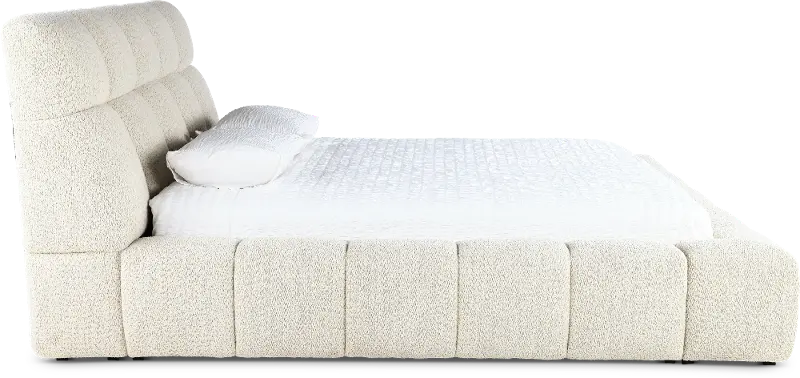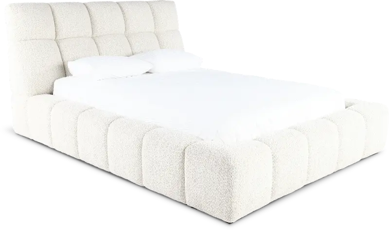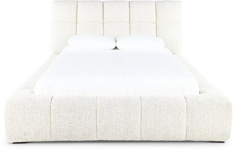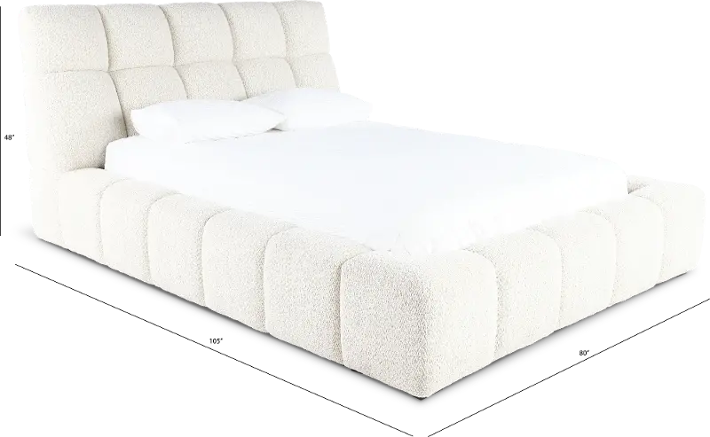 Textured in a high-performance boucle fabric with an oversized quilt patterned headboard and frame, this queen-size upholstered bed will set an invitingly plush and chic backdrop in your bedroom space.