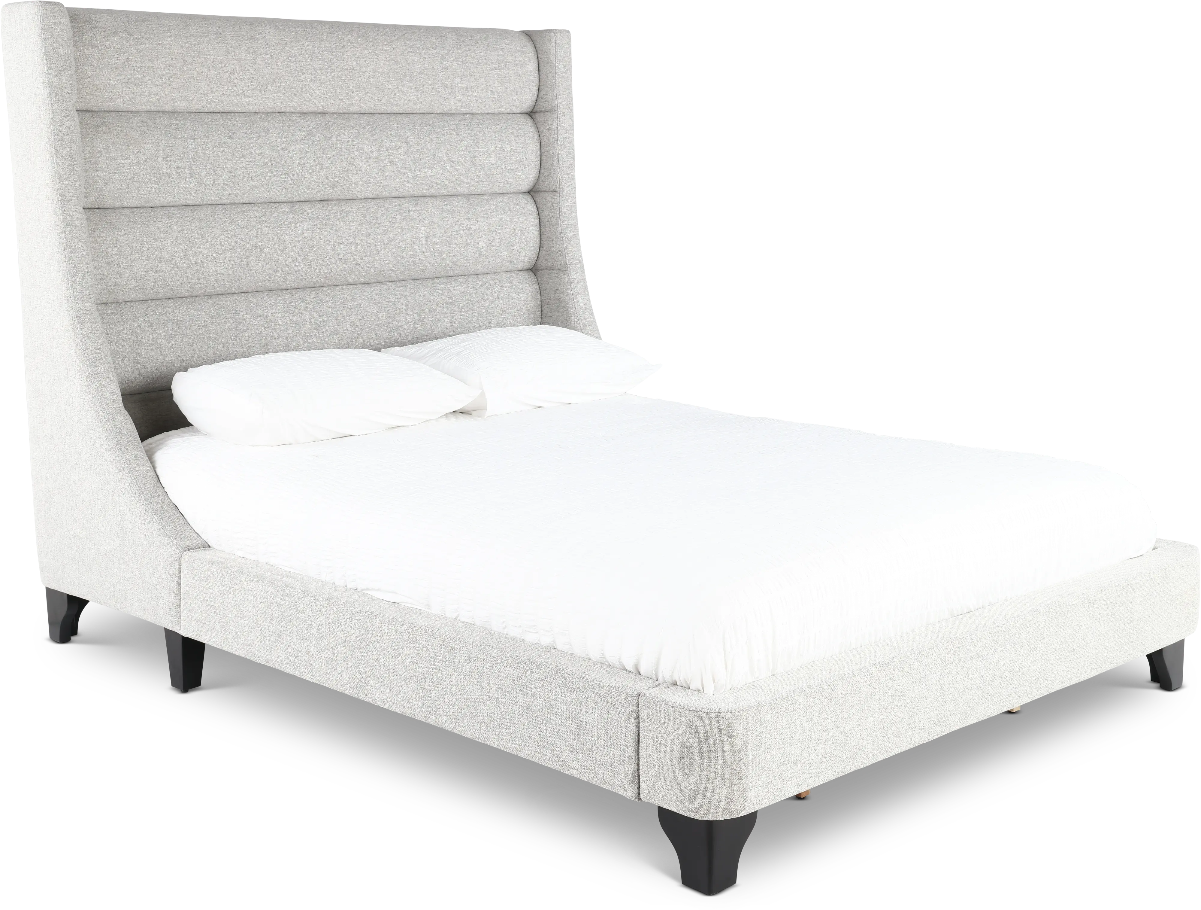The lofty headboard features channel quilting and angled wings, setting an impressive backdrop in your bedroom space. Its light gray upholstery is breezy and versatile and will effortlessly blend in with existing furniture pieces.