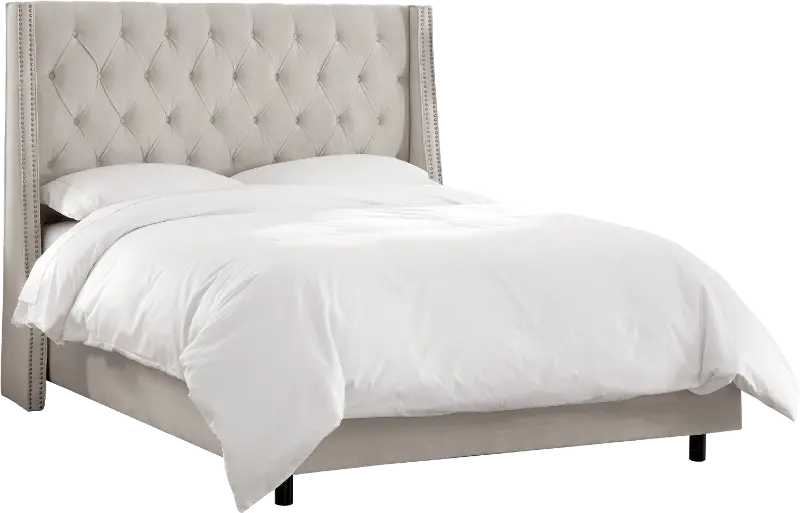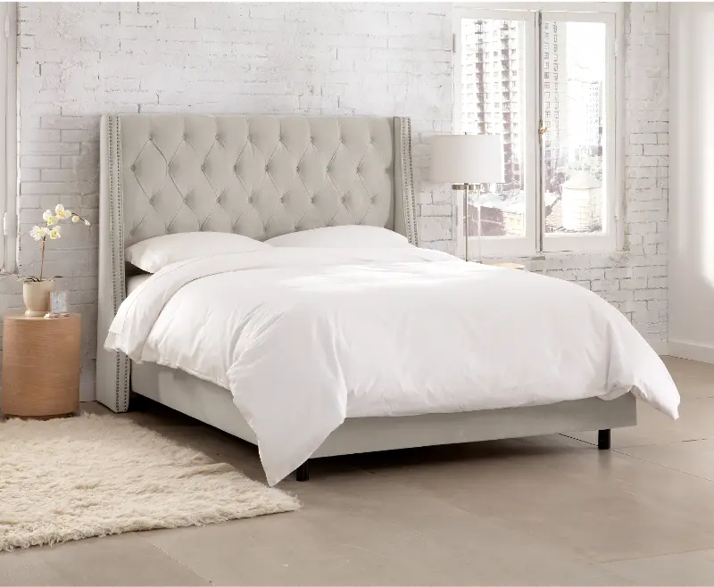 Riley Velvet Light Gray Flared Wingback King Bed - Skyline Furniture