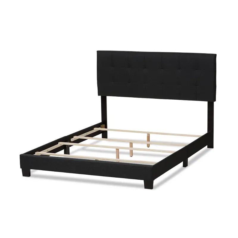 The headboard offers a grid-tufting design that lends to its sophisticated vibe. It features high-quality polyester beige upholstery with polyurethane foam padding while black solid wood legs add to its stability. Effortlessly update the look and feel of your bedroom with the stylish and enduring Brookfield upholstered bed!