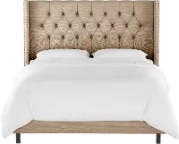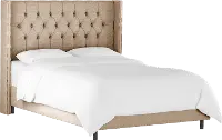 Abigail Linen Sandstone Tufted Wingback Queen Bed - Skyline Furniture