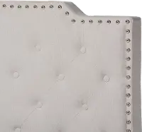 Drawing on both contemporary and traditional design inspiration, its crafted with a sturdy wood frame and upholstered in an elegant linen-like fabric. The beds padded with foam, creating a welcoming and comfortable backdrop. Glamorous silver nail-heads accentuate the headboard and footboard silhouettes, while button tufting lends a timeless look. Black tapered feet add a sleek touch.