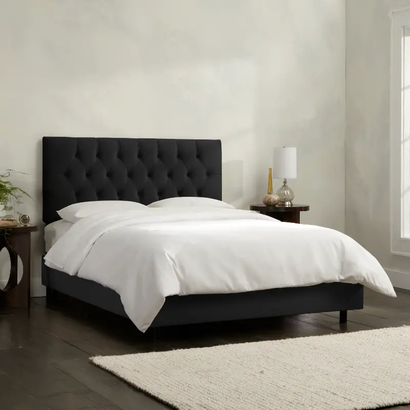 Julia Velvet Black Tufted King Upholstered Bed - Skyline Furniture
