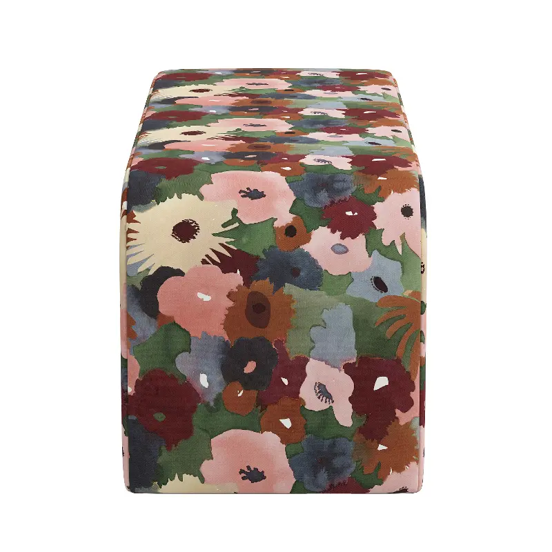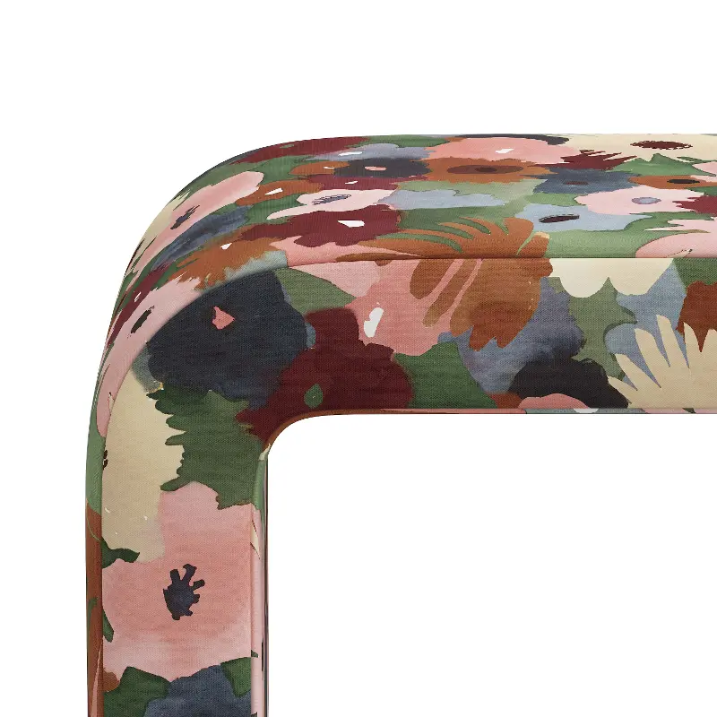 Fully upholstered from top to bottom with a Floral fabric. This bench is as stylish as it is functional. Made to order and manufactured in Illinois.