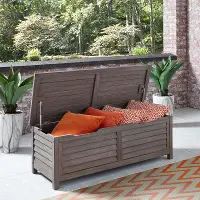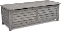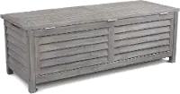 The solid Acacia wood construction is water-resistant, and the gray teak finish is sealed with linseed oil to protect and enhance the wood's natural beauty. Add this to your backyard to keep everything organized and put away!
