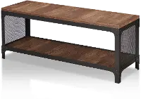 Distinguished by rugged metal construction with mesh panels and wooden accents, the multi-purpose reclaimed oak finish bench offers generous seating while allowing you to easily organize shoes on the open shelf.