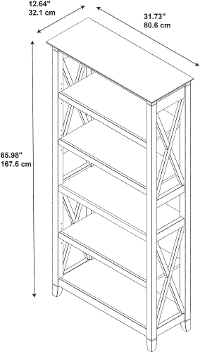 It's perfect to showcase your favorite art, photos, plants and more. Work comfortably in style with the unique X pattern accent on side panels for a relaxed and airy Bookcase design. It features three adjustable shelves for storage flexibility and two fixed shelves that provide added stability. This collection offers the look of natural reclaimed wood with an authentic Washed Gray finish and cottage style details with sturdy and attractive post legs. Wall attachment hardware is included for permanent placement. Plus this 5 Shelf bookcase can fit in a variety of spaces and cross over from one room to another. This collection offers a harmonious selection of furniture that makes putting a complete room ensemble together a breeze.