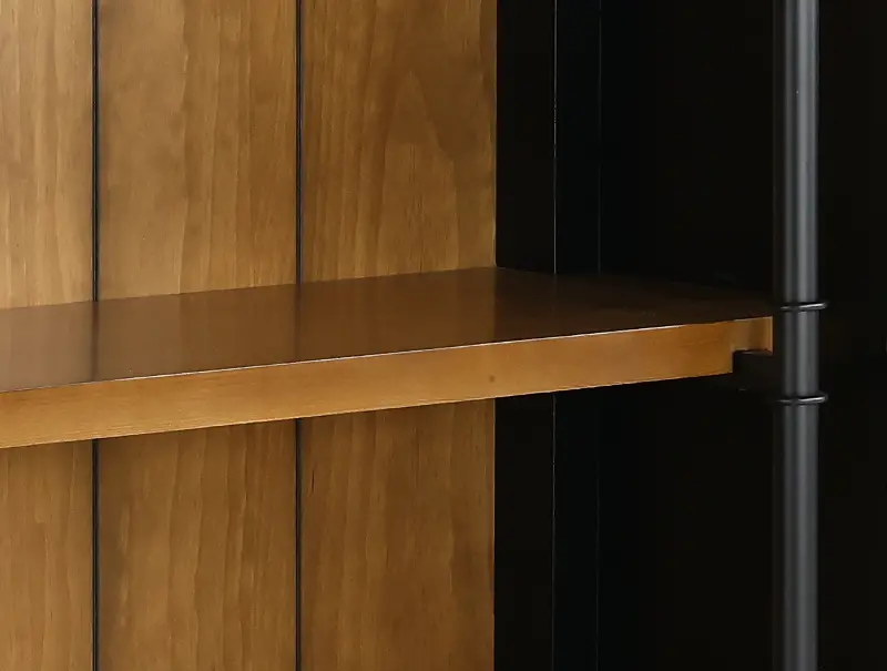 Invite a classic style and display space into your home with this two-tone black and honey-brown bookshelf. With plenty of space for your books and favorite display pieces, you will love getting organized and moving your things onto this piece. With one fixed shelf and four adjustable shelves, you will enjoy the flexibility in your design. Purchase additional bookcases to easily add on to your library and add the matching desk to have a beautiful new home office makeover.