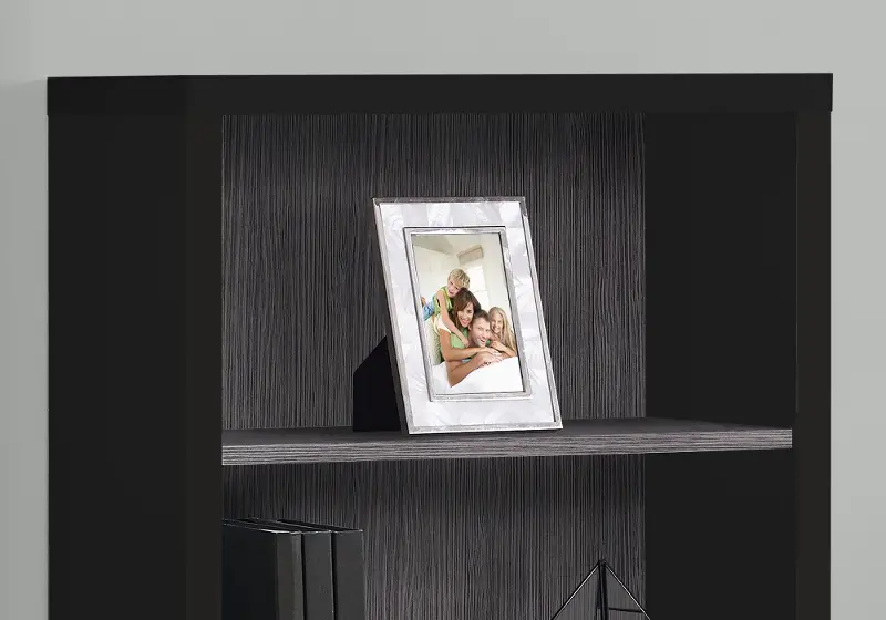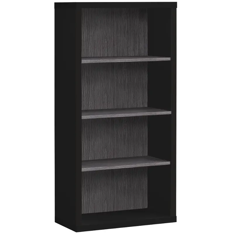 The modern look of this chic 48" bookcase finished in black and grey wood-look is the perfect combination of design and function.