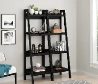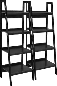 Lawrence Black 4-Shelf Ladder Bookcases, Set of 2