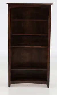 The mahogany brown design complements the natural wood grain and high-end catalyzed Amish finish. Five open shelves offer plenty of storage to keep your office supplies, family photos, and home decor beautifully displayed. This bookcase will fit right in with any home office design!