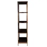 Four spacious shelves organize books, decorative accents, and potted plants, while the mixed-material construction crafts a modern feel. Alternating wood squares create a geometric look, adding depth and dimension. Your home gets a modern upgrade when you add this tall etagere to your home office or open-concept living space.