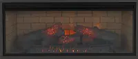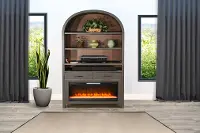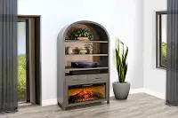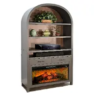 The Chill collection wide arch bookcase with fireplace insert offers a sleek style with a beautiful contour.