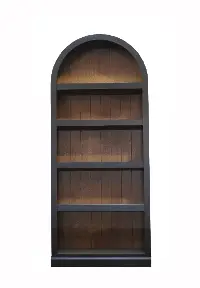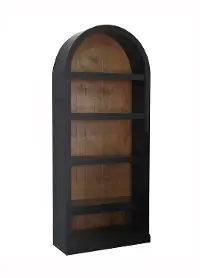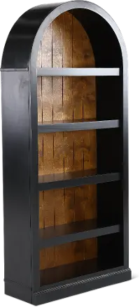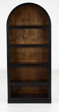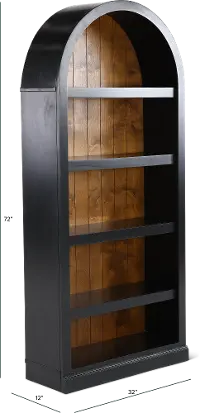 Solidly crafted, this 72" bookcase features an eye catching two-tone black and brown finish. Its arched design adds visual interest, while 3 adjustable shelves and 1 fixed shelf provide handy storage.