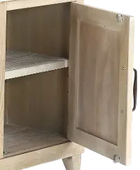 This uniquely shaped bookcase pier is intended to be placed on the right-hand side of the Rivian Fireplace TV stand. The wheat-colored angled frame and light gray top are accented by darker hardware for contrast. Three open shelves offer ample room to display your books, plants, and decor. A roomy bottom cabinet helps keep wires and consols neatly tucked away. Add other pieces from this collection to pull it all together.