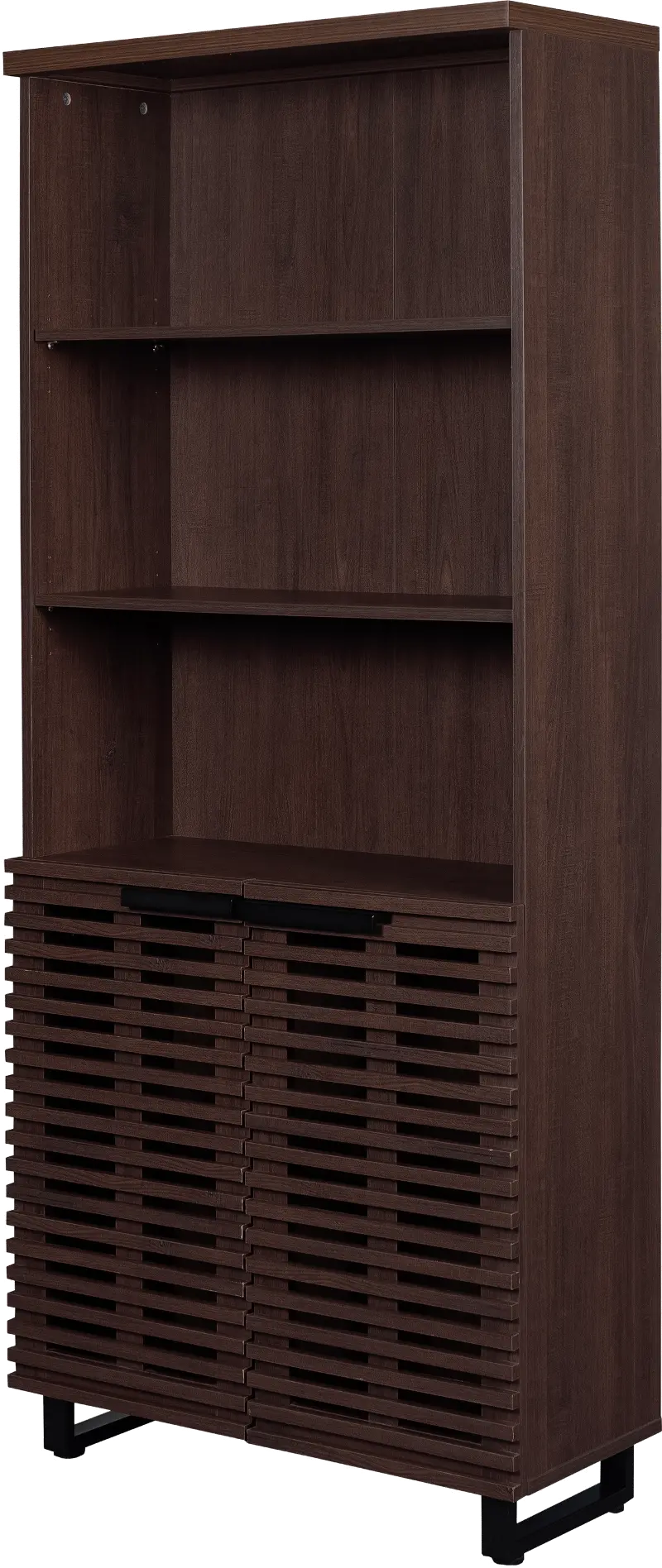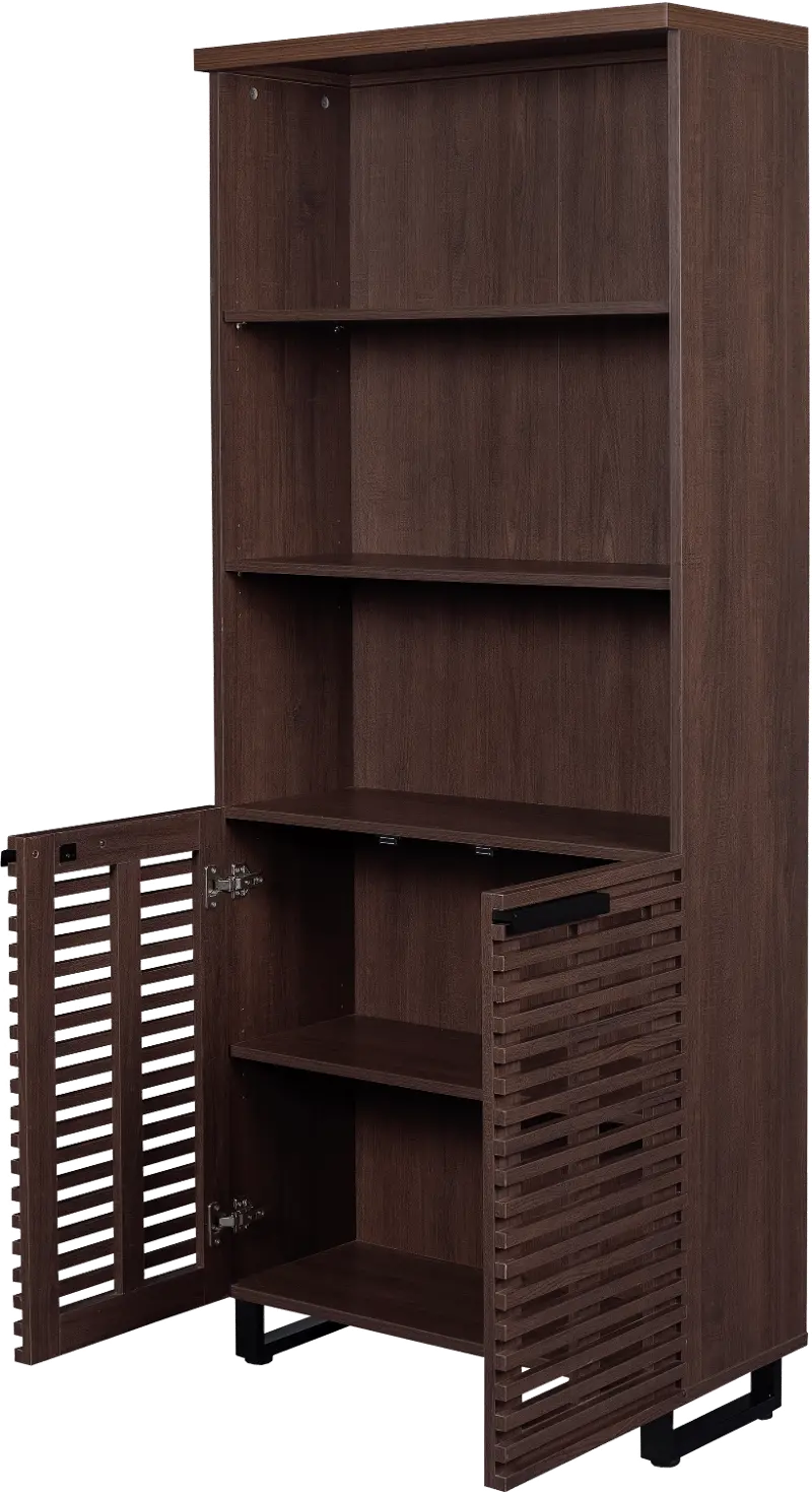 The Bisana brown bookcase offers a stylish and functional way to refresh your home office.