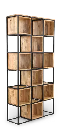 Designed with six rows and three columns, this versatile piece features 18 open compartments, giving you plenty of room to showcase décor, books, and everyday essentials. A sleek black metal frame pairs beautifully with the light‑brown wood cubbies, creating a warm, rustic‑meets‑contemporary look that elevates any room.